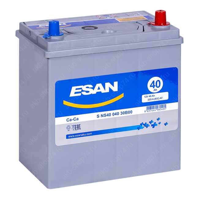 Аккумулятор ESAN SMF SNS40 040 30B00 ёмкостью 40 А/ч — это надежное решение для компактных автомобилей японского и корейского производства. Он обеспечивает стабильный запуск двигателя и питание бортовой сети в стандартном азиатском корпусе NS40.